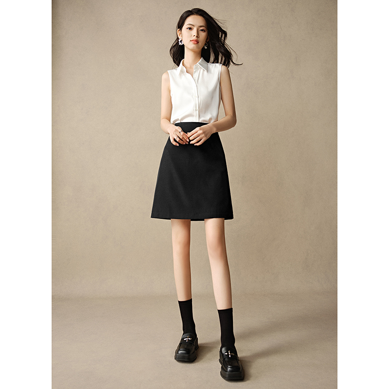 晚白2025年秋新款 休闲通勤轻熟裙子气质高腰斜纹A字短裙