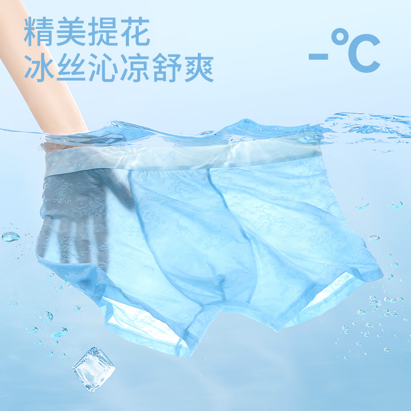 薄款 夏季 透气无痕四角裤 男生抗菌平角大码 头 猫人冰丝内裤 短裤 男士