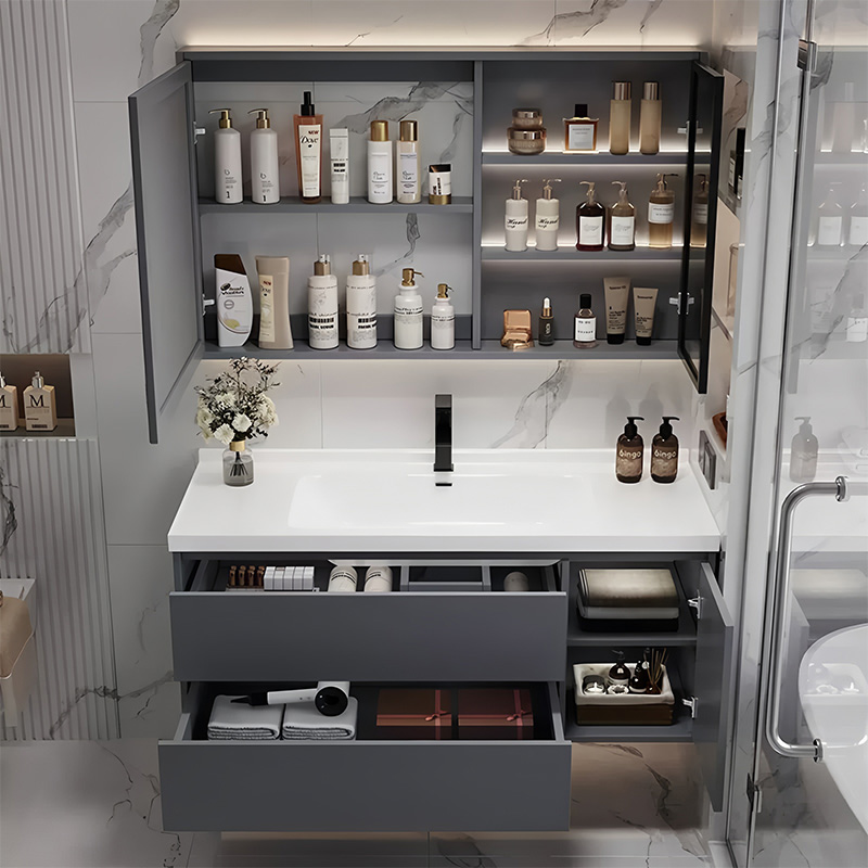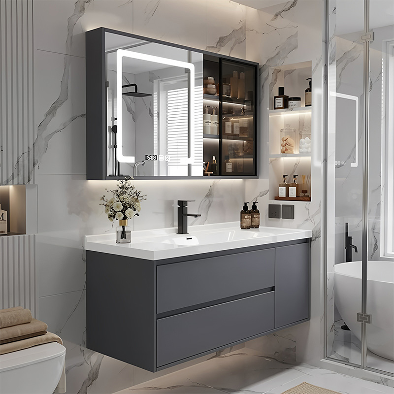 现代实木浴室柜组合陶瓷一体盆洗手洗脸盆智能卫生间储物柜