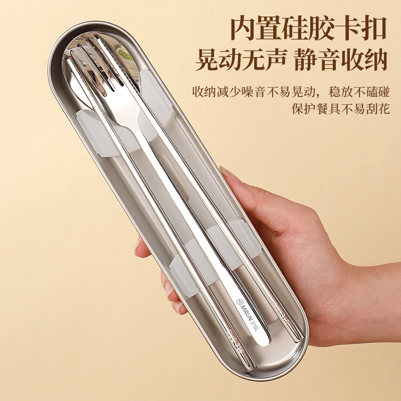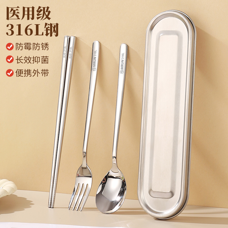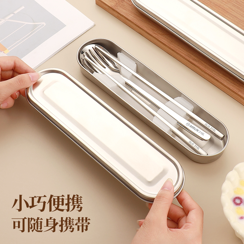 316不锈钢筷子勺子套装 304外出便携餐具收纳盒学生筷子个人专用盒