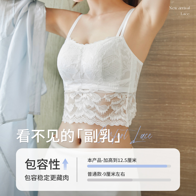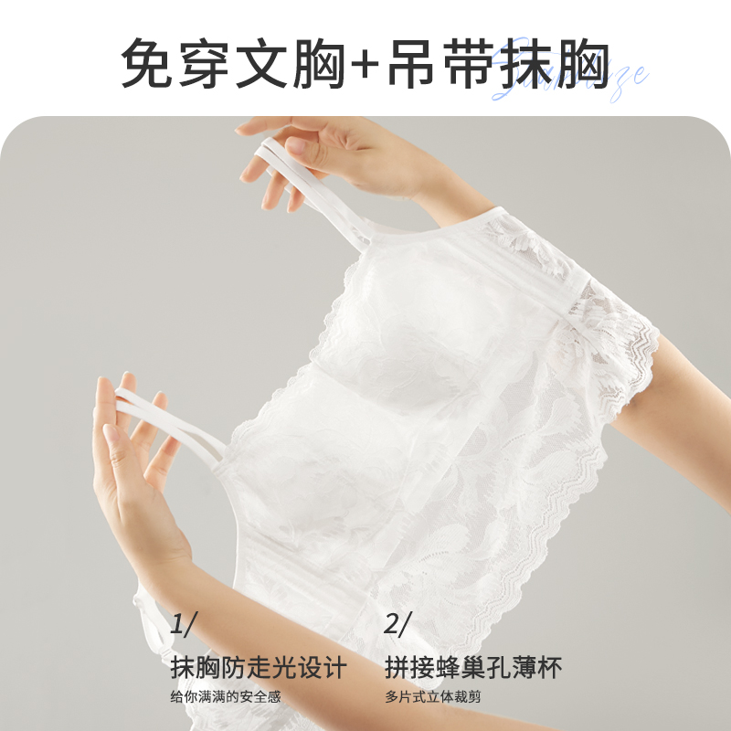 防走光美背文胸 夏大胸线下抹胸式 安娜蜜语大码 女士蕾丝内衣女薄款