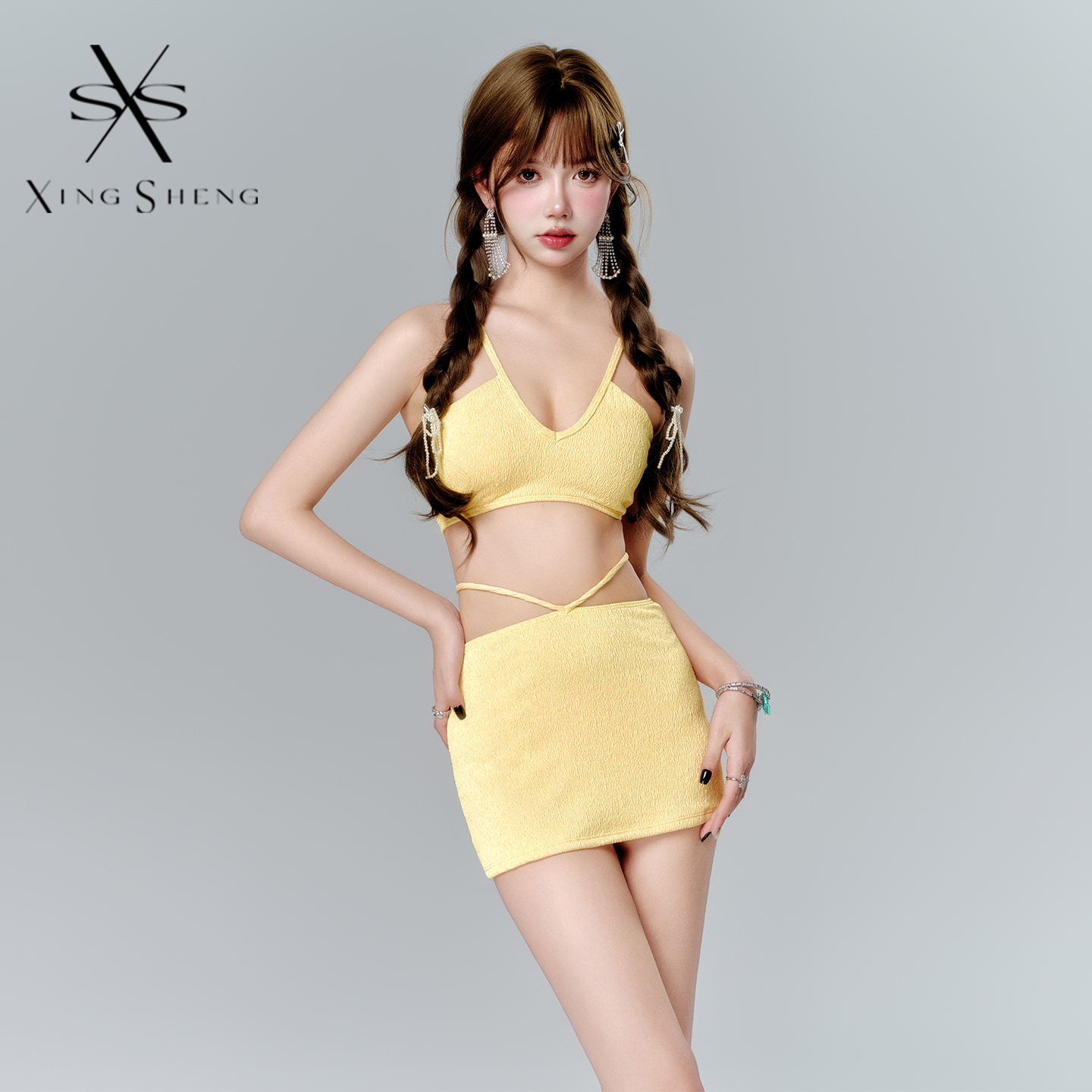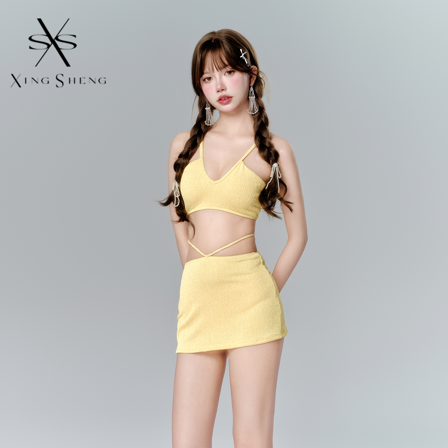 分体纯欲黄色遮肚显瘦沙滩海边度假比基尼 爆款 2025夏季 泳衣女新款