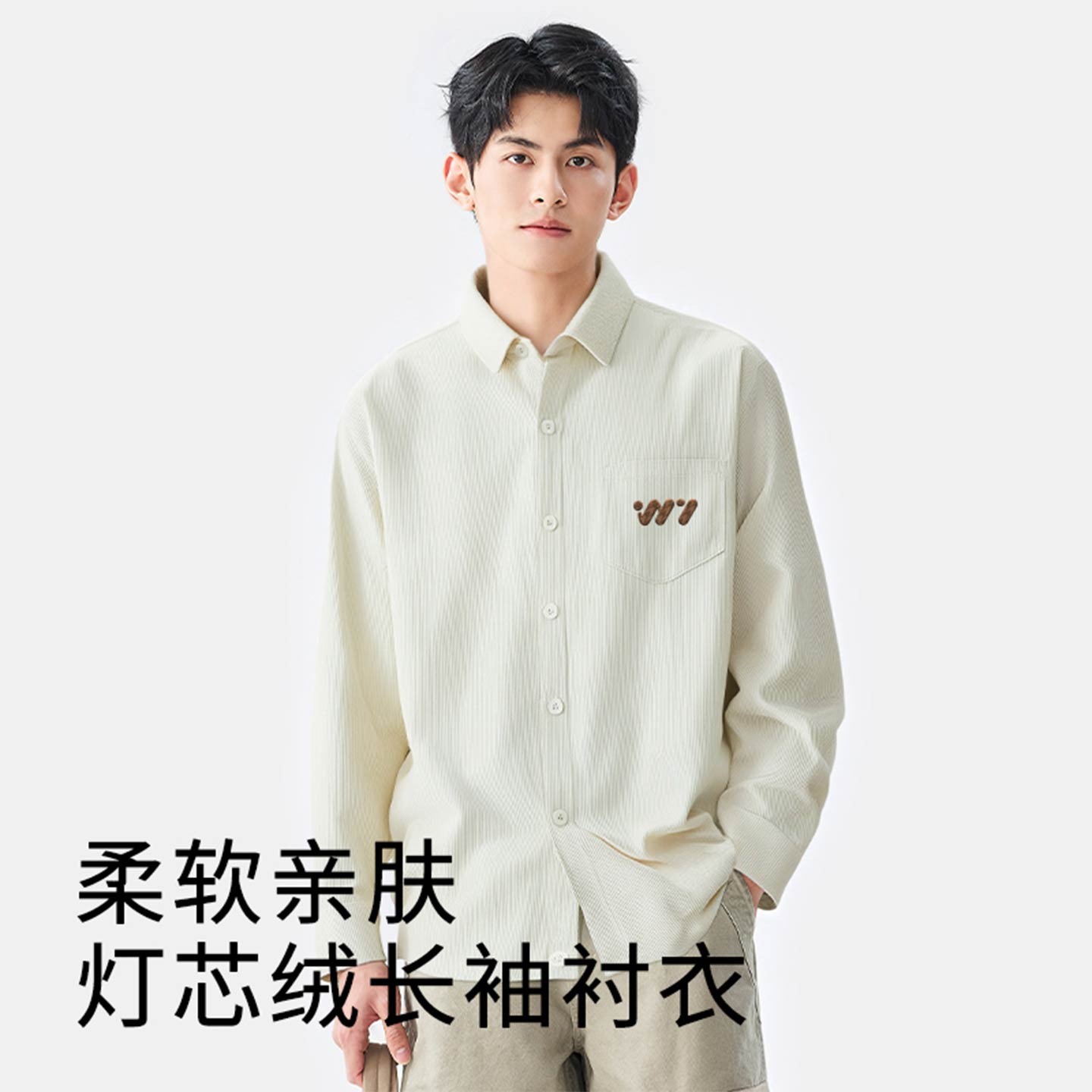 抗皱翻领潮流衬衫 灯芯绒男士 新款 班尼路S&K系列米色外套男秋季