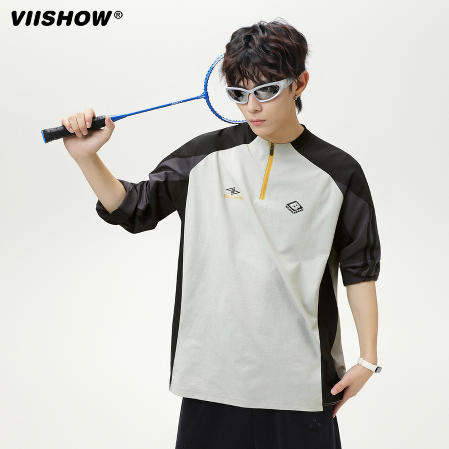 薄款 VIISHOW拼接透气长袖 半开拉链卫衣男士 秋季 运动上衣 T恤男士