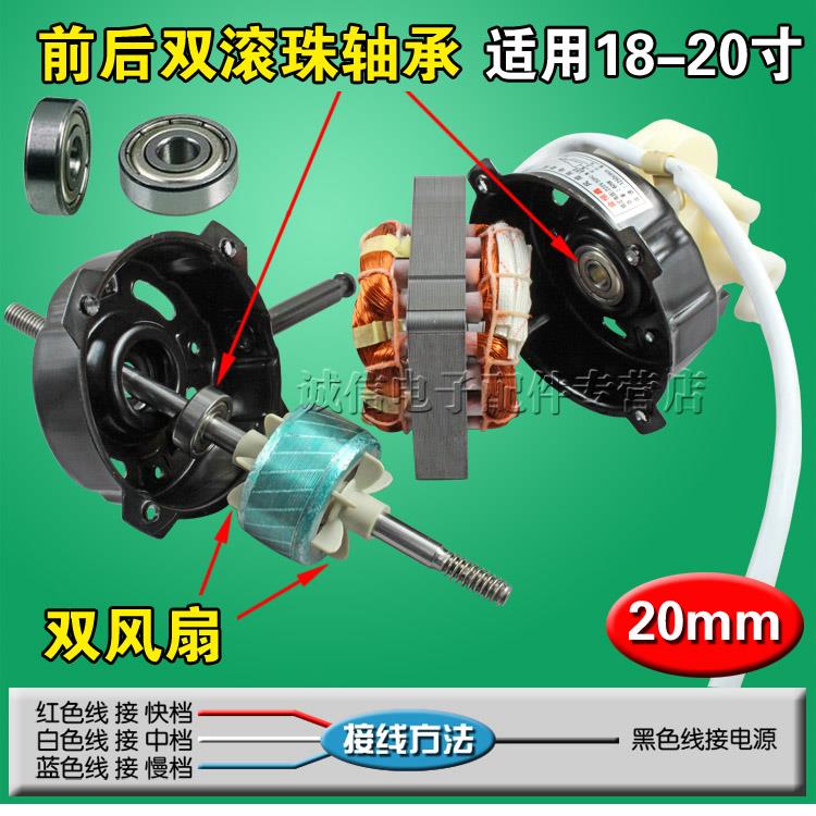 45电风扇电机双轴承 通用FS 落地扇马达18寸450mm长轴20钢片 包邮