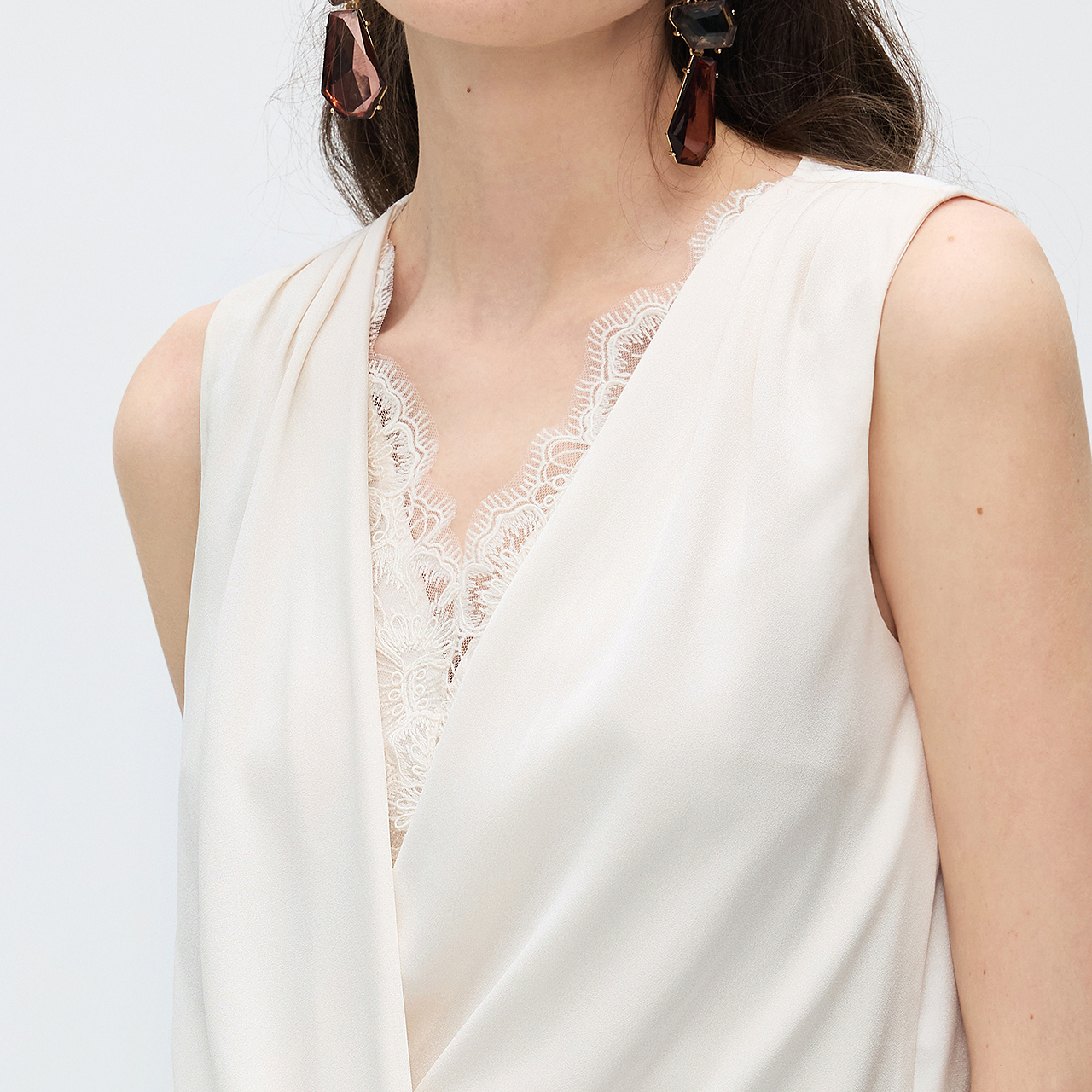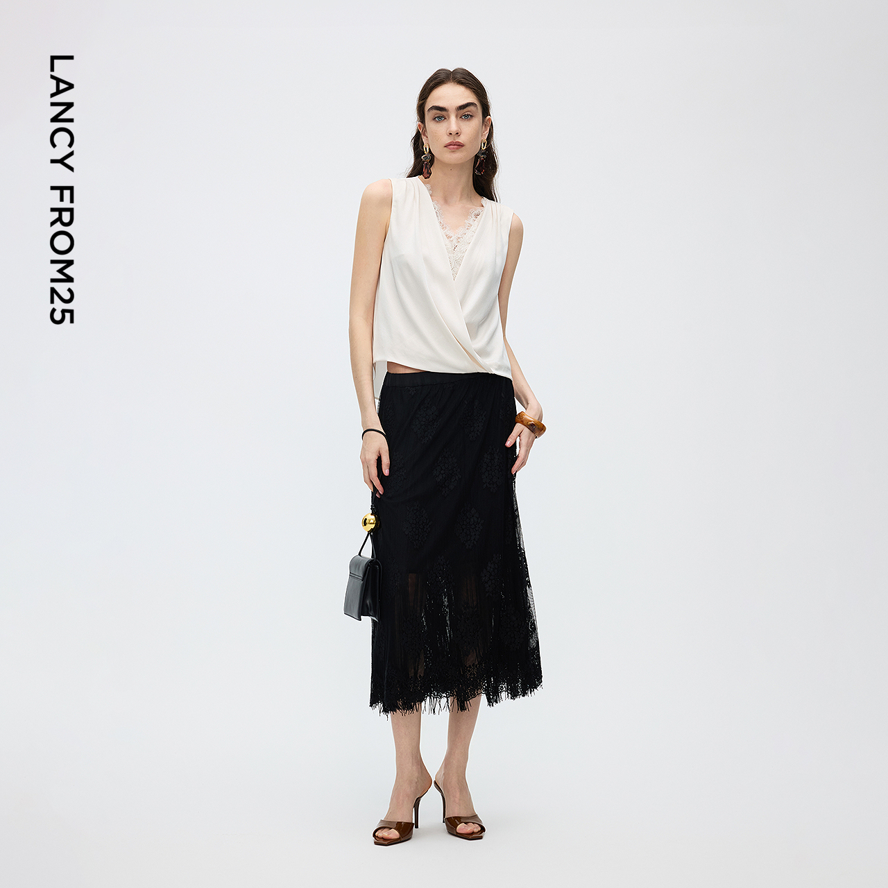 新款 设计感蕾丝拼接背心气质上衣2025年秋季 衬衫 朗姿醋酸v领无袖