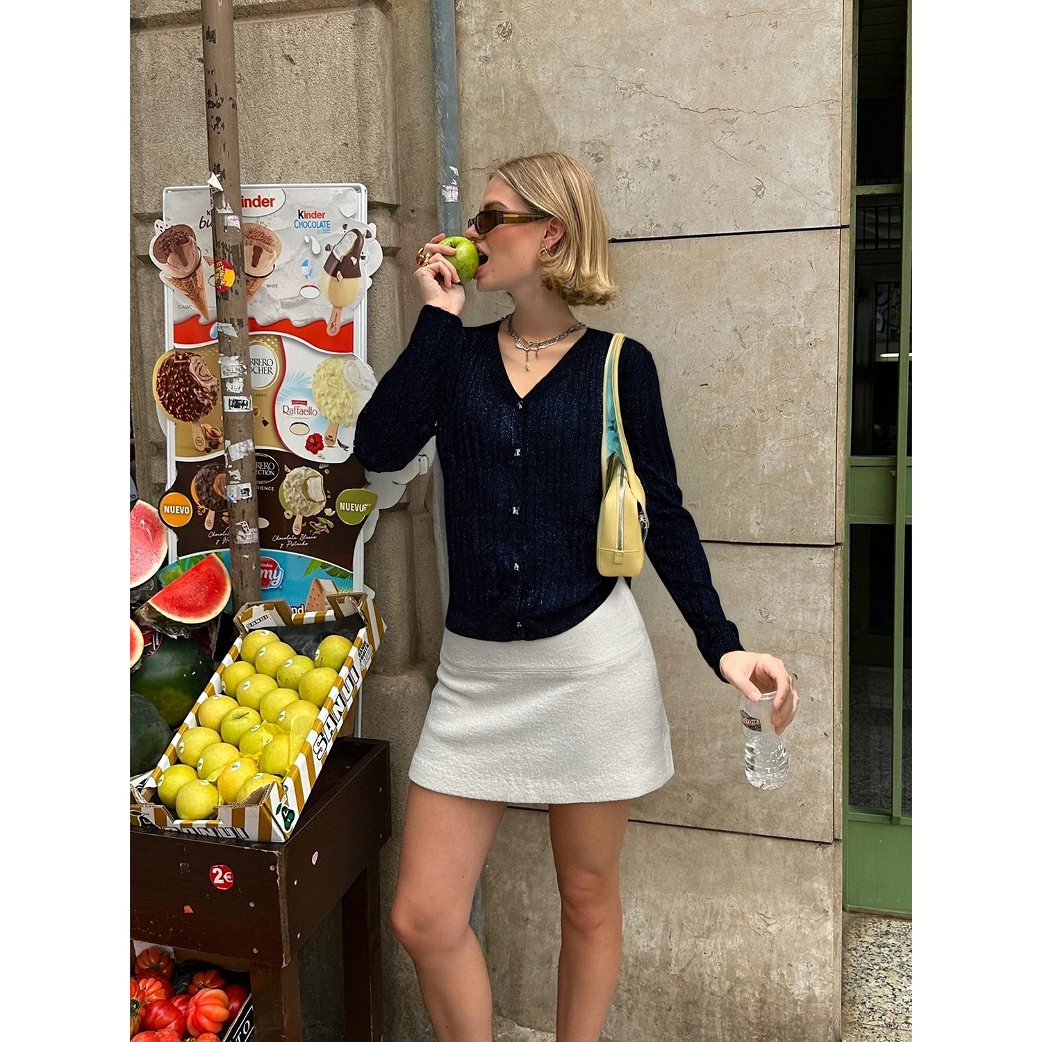 流行百搭气质亮丝绞花轻薄直筒女士上衣针织开衫 BCBG新款 早秋时尚
