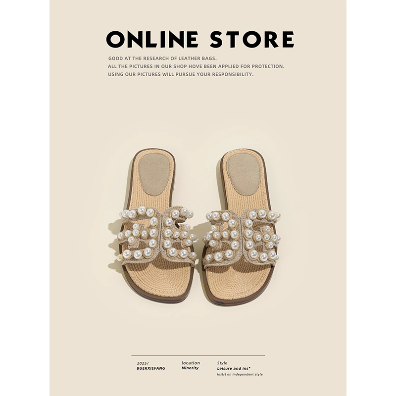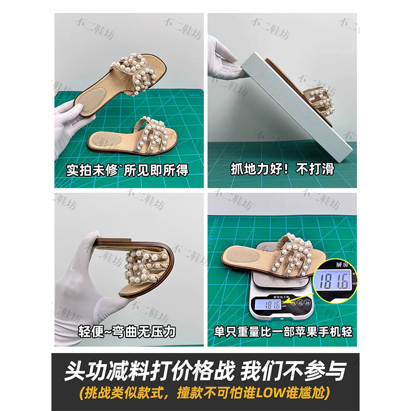女夏外穿羊皮草编平底半拖凉鞋 法式 珍珠贝凉拖鞋 虞书欣同款 女 版