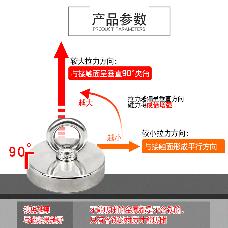 强力磁铁强磁打捞神器圆形吸铁石高强度钕铁硼磁力吸盘固定器磁石