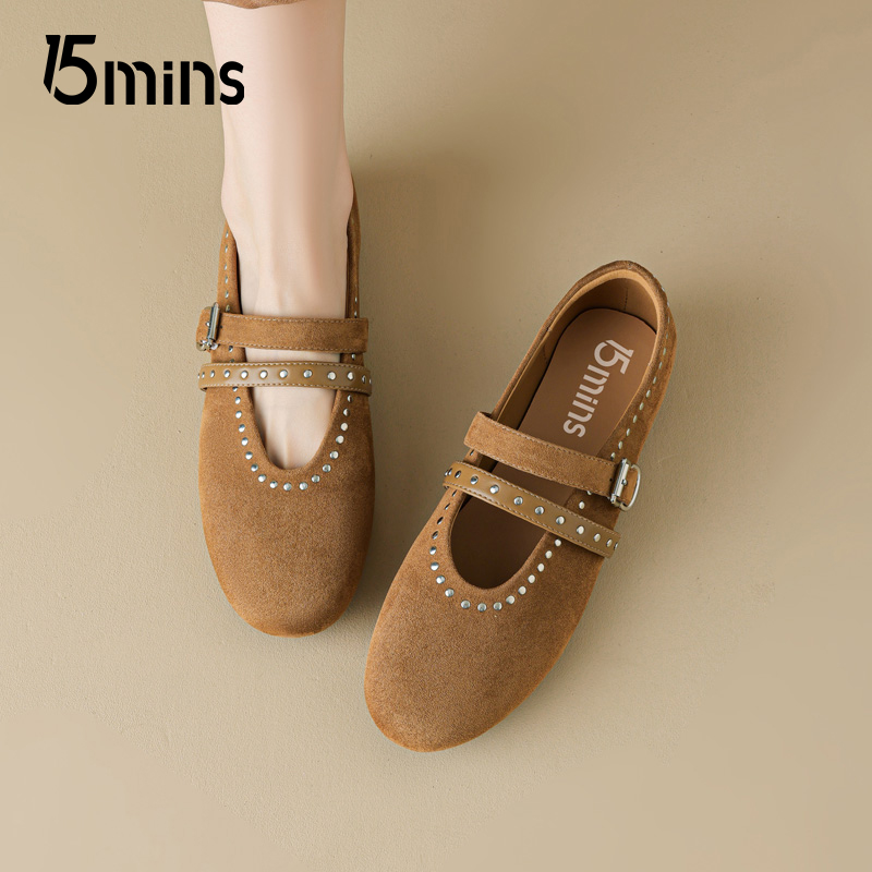 芭蕾单鞋 15mins勃肯玛丽珍女鞋 铆钉复古巨好看法式 夏季 爆 2025新款