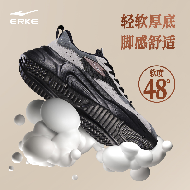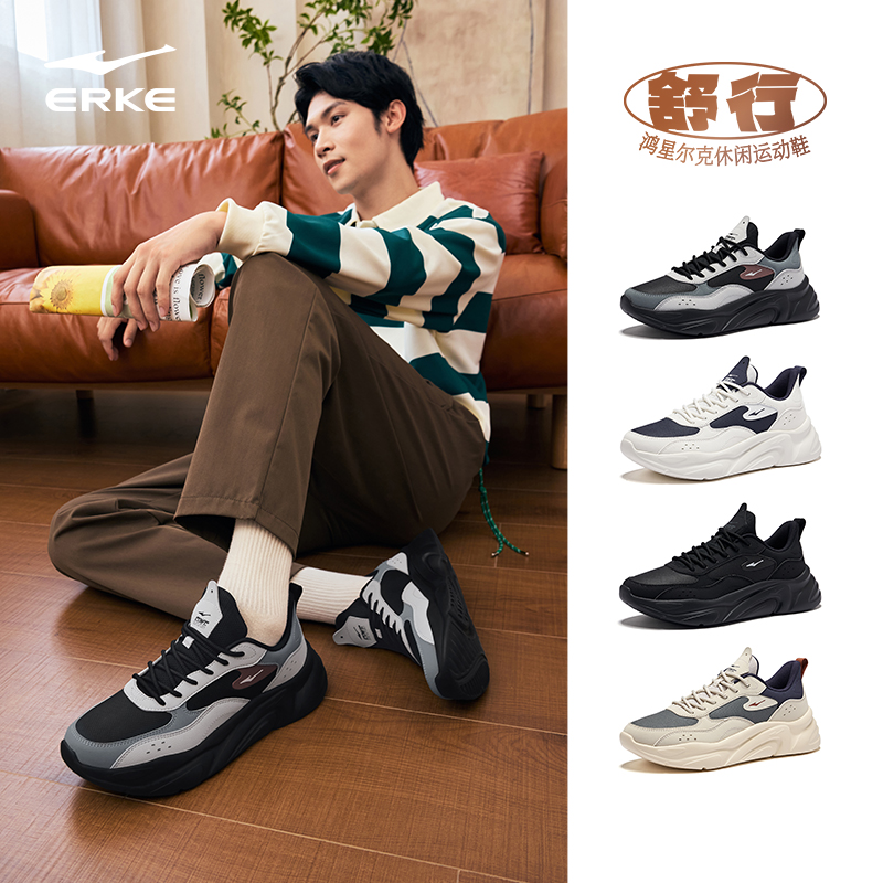 革面增高老爹鞋 鸿星尔克舒行秋冬新款 百搭软底运动鞋 休闲鞋 男鞋