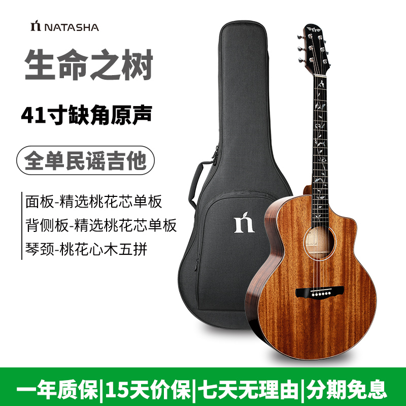 Natasha娜塔莎生命之树38寸41寸桃花芯全单民谣加振电箱吉他入门