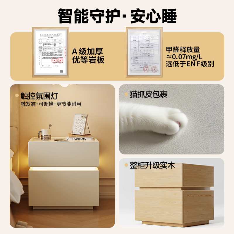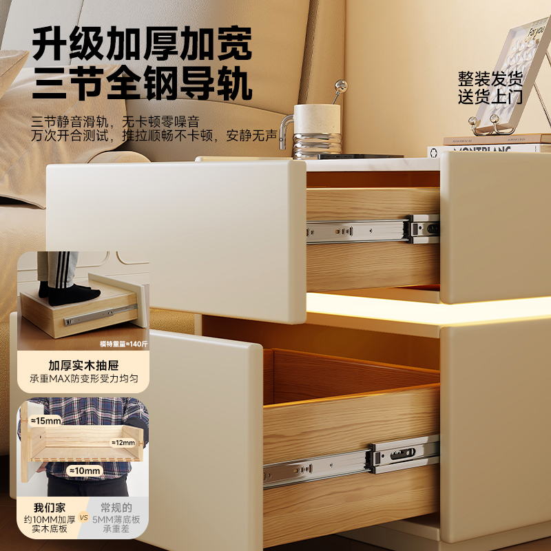 床头柜家用卧室实木简约现代2024年新款 出租房酒店小柜子岩板收纳