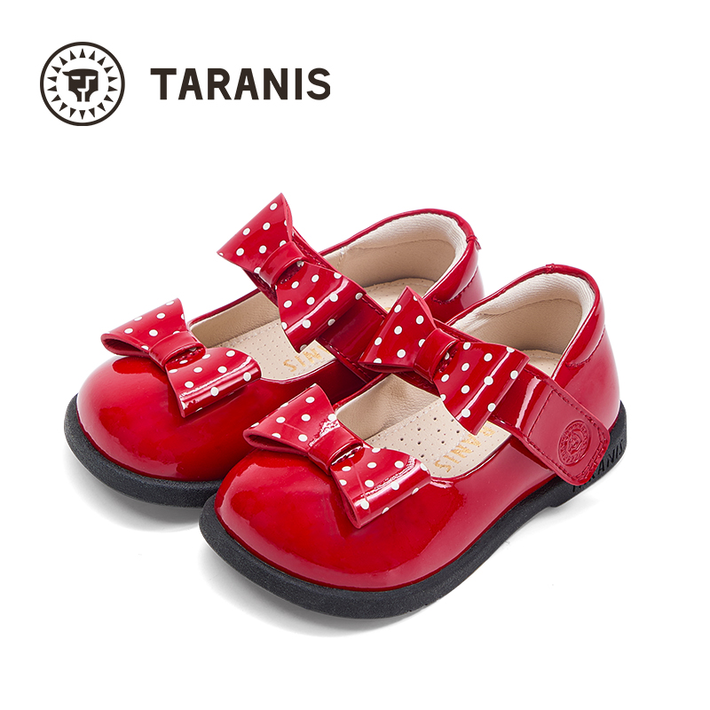 女宝宝复古俏皮波点公主鞋 泰兰尼斯女童红色小皮鞋 儿童鞋 新款 秋季