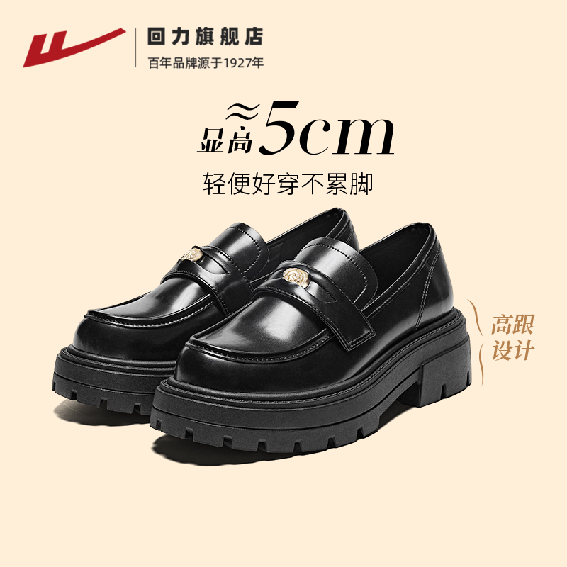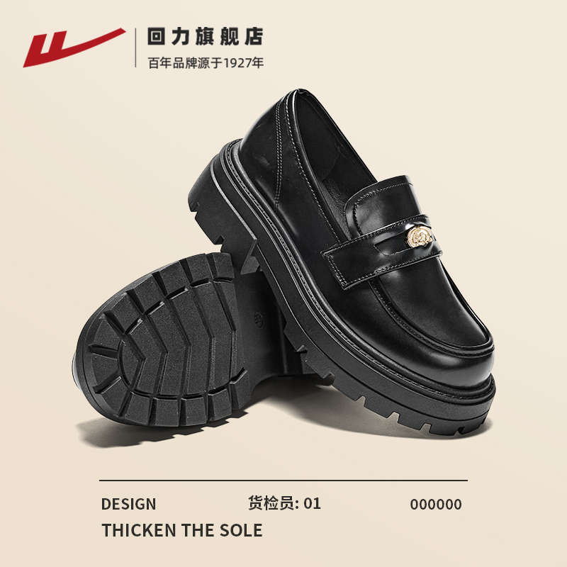 一脚蹬不累脚厚底鞋 山茶花乐福鞋 女2025春秋新款 回力英伦风小皮鞋