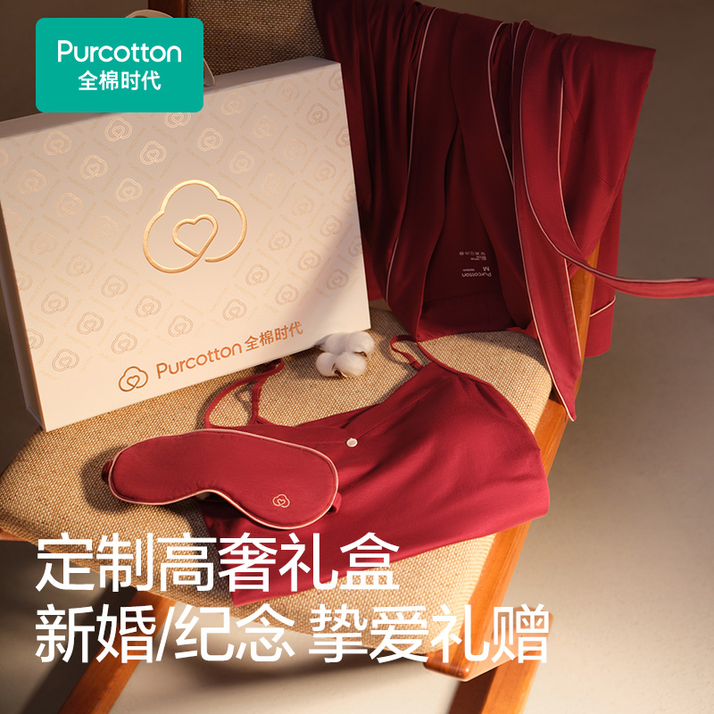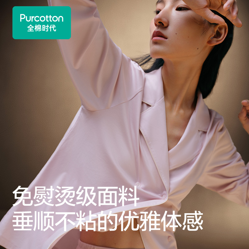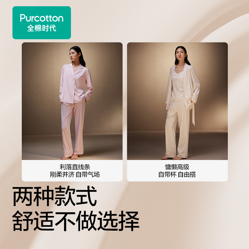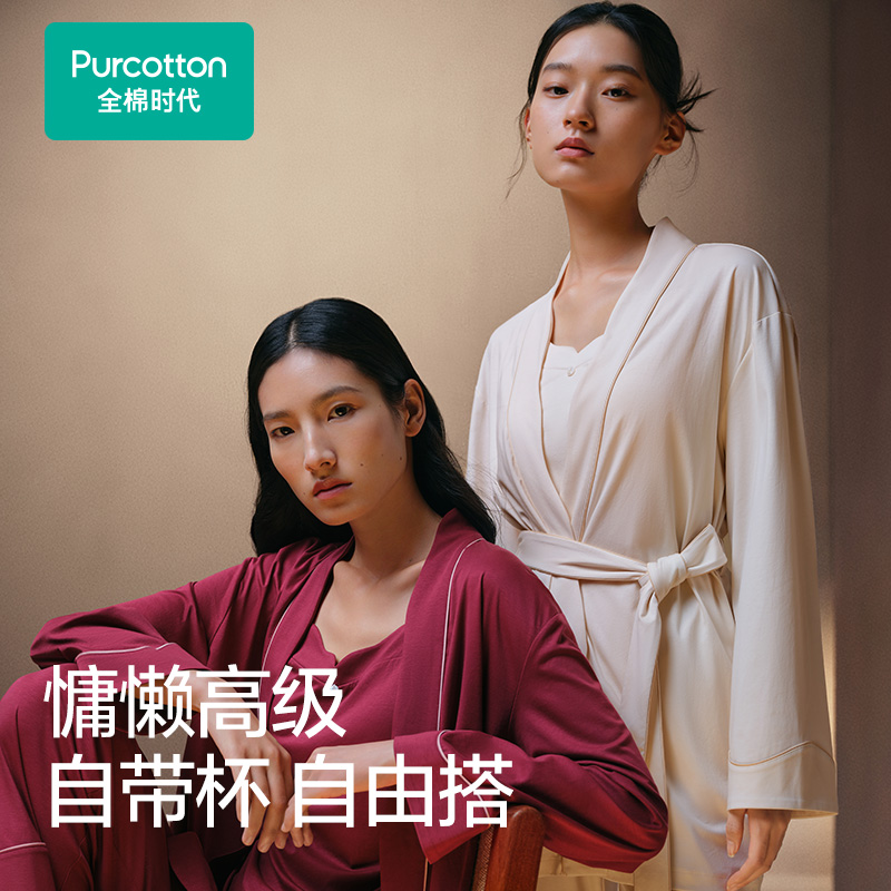 全棉时代睡衣女带胸垫水光棉家居服春秋长袖 带杯防凸点七夕礼物
