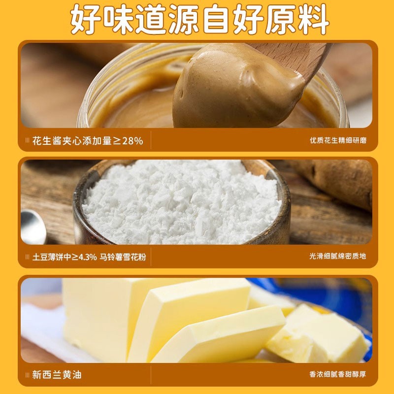 海润谷花生酱夹心薄脆超薄马铃薯饼干儿童休闲网红小零食整箱批发