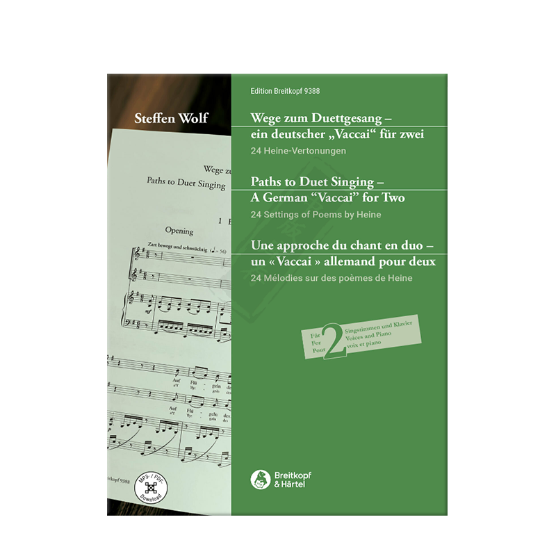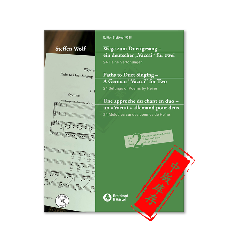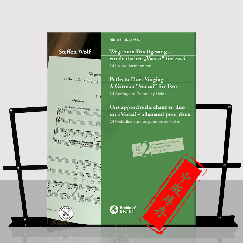 大熊原版 EB9388 Vaccai Duet 海因里希海涅诗歌 两个24个场景德国歌曲 Singing Wolf 乐谱书 German 沃尔夫二重唱之路 Paths