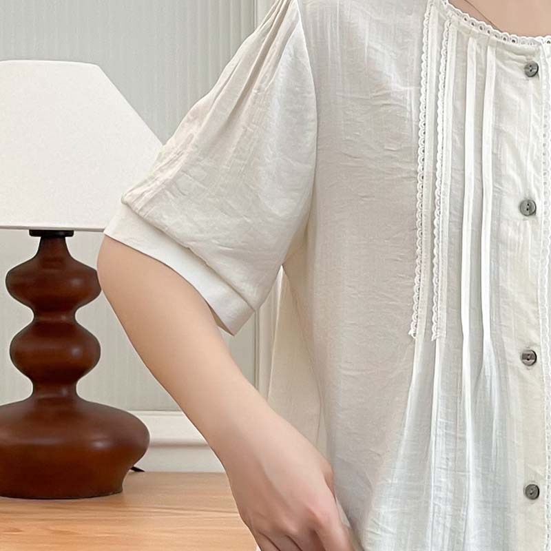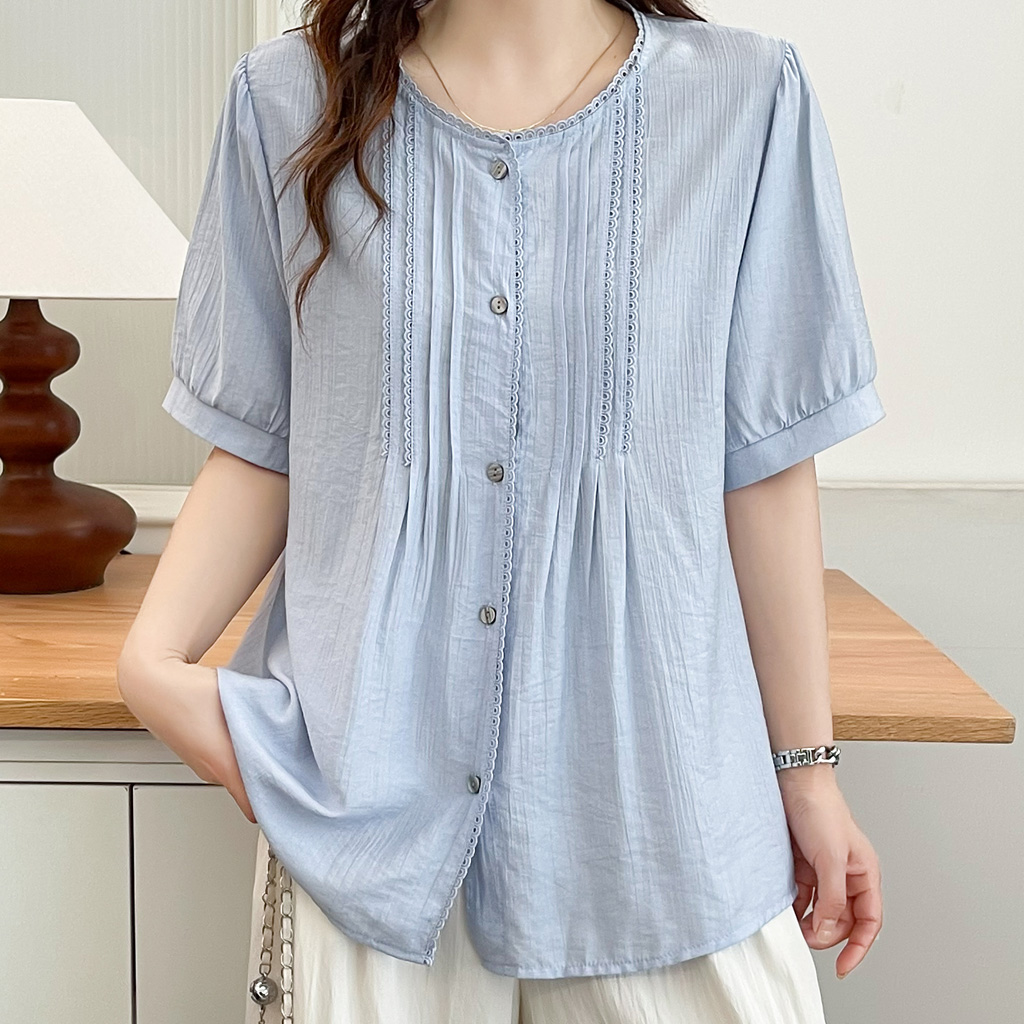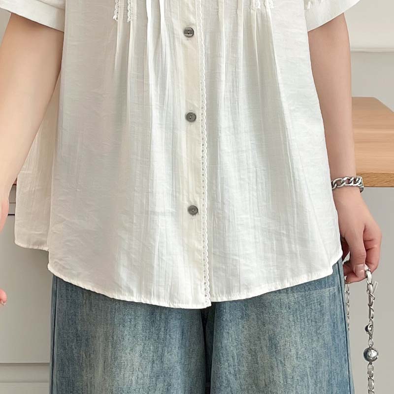 胖mm时尚 女装 洋气纯色短袖 衬衫 上衣 2025夏季 遮肚子显瘦娃娃衫 大码