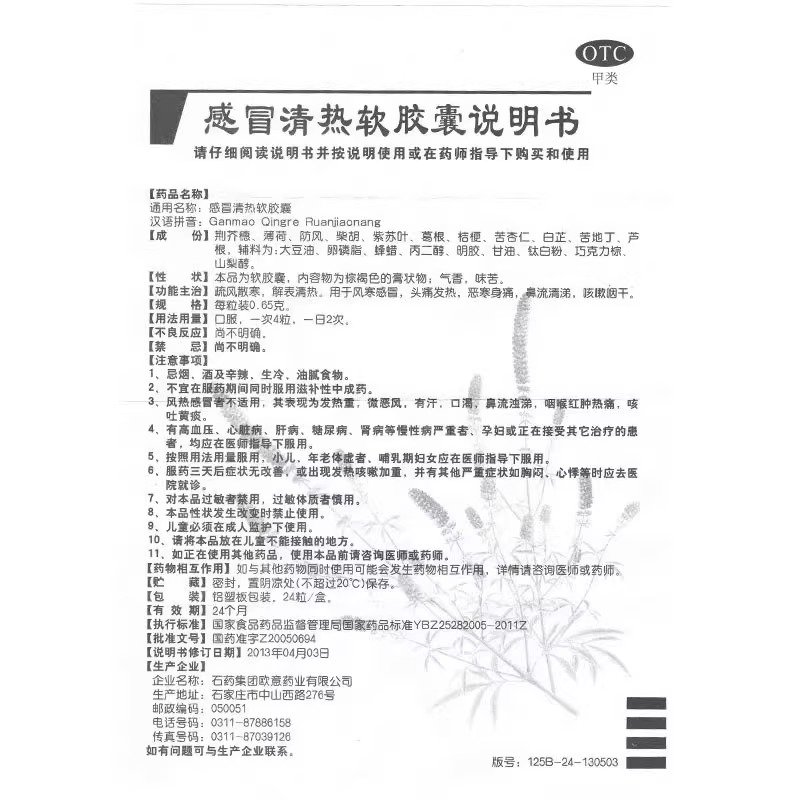 欧意感冒清热软胶囊24粒清热解毒流感热毒发热面赤急上呼吸道感染