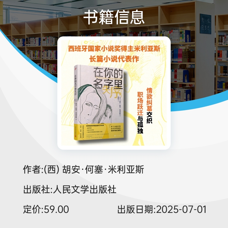 名字里失序 纳达尔文学奖 西班牙小说奖得主米利亚斯长篇小说代表作 这就是孤独 外国文学小说 情欲纠葛交织职场孤独 在你