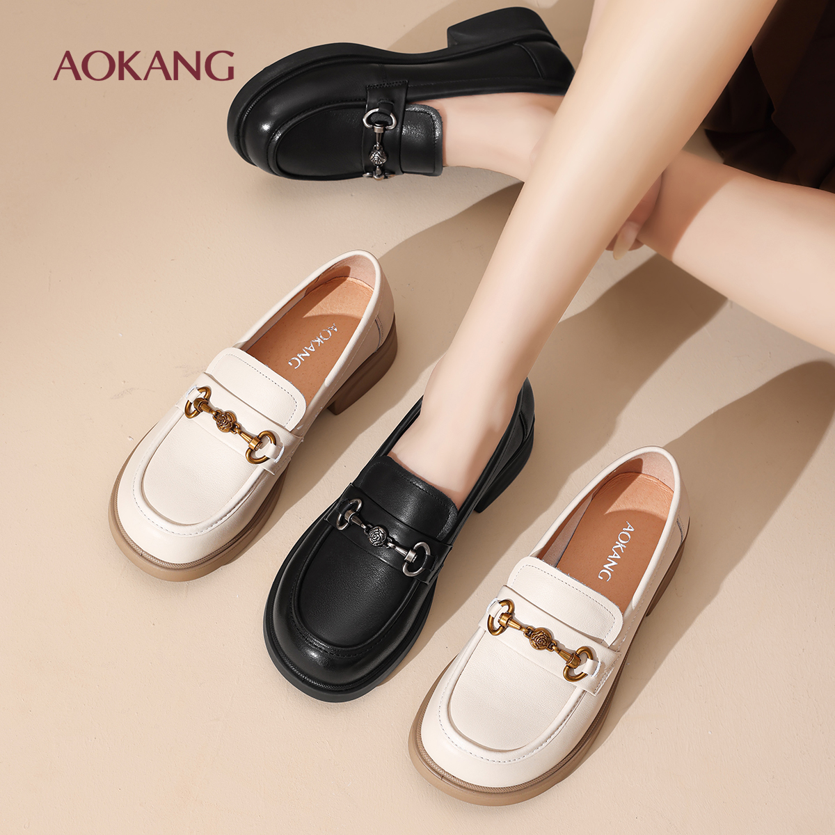 女鞋 休闲舒适浅口单鞋 2025秋季 真皮软底乐福鞋 新款 奥康