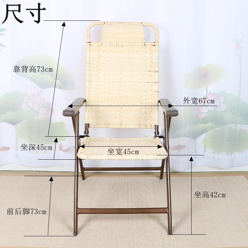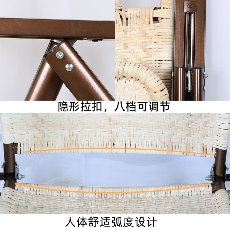 真藤午休躺椅休闲折叠椅真藤皮老式 二折椅老人高靠背户外乘凉藤椅
