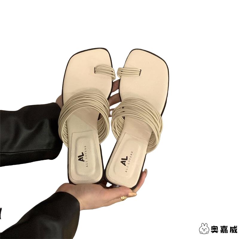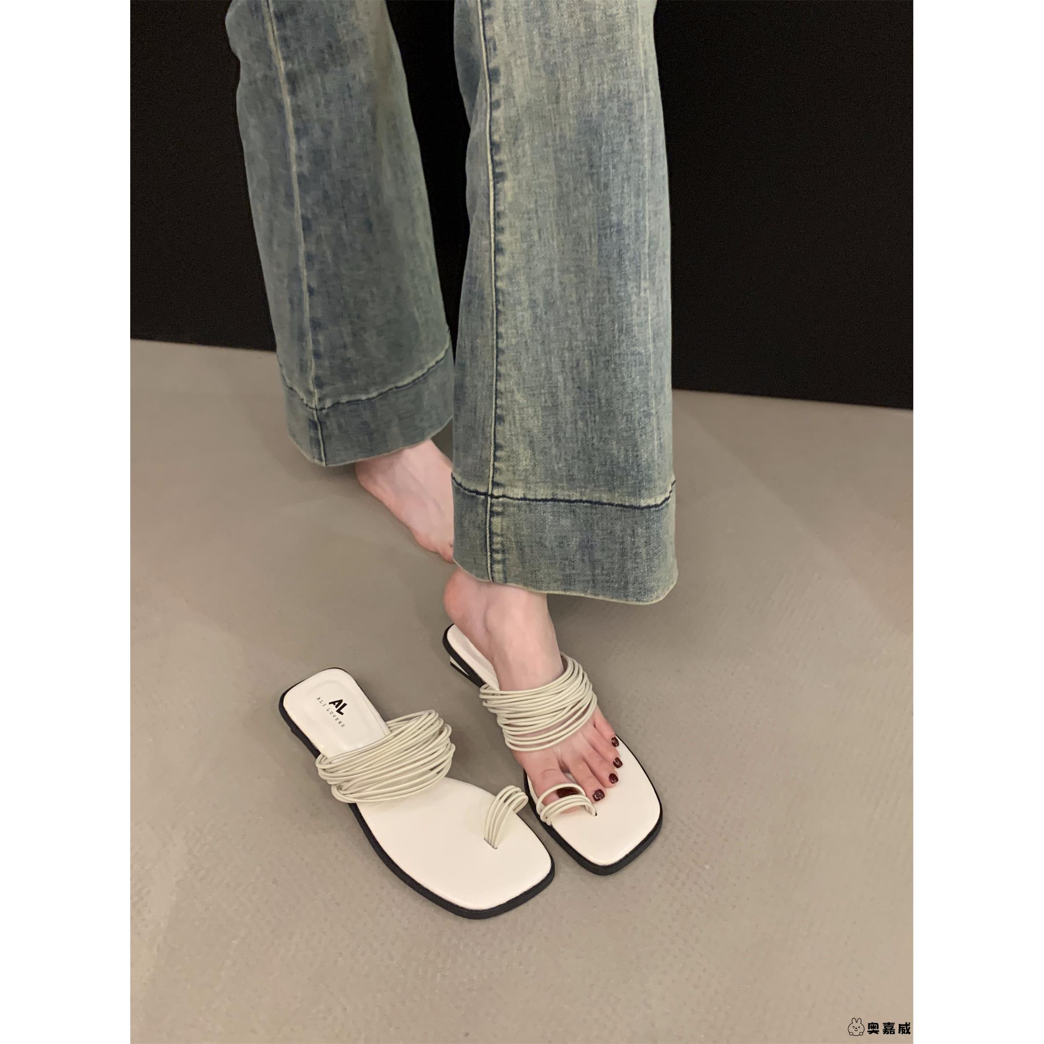 子2025新款 仙女鞋 夏季 时尚 低跟套趾法式 外穿银色细带凉鞋 小凉拖鞋