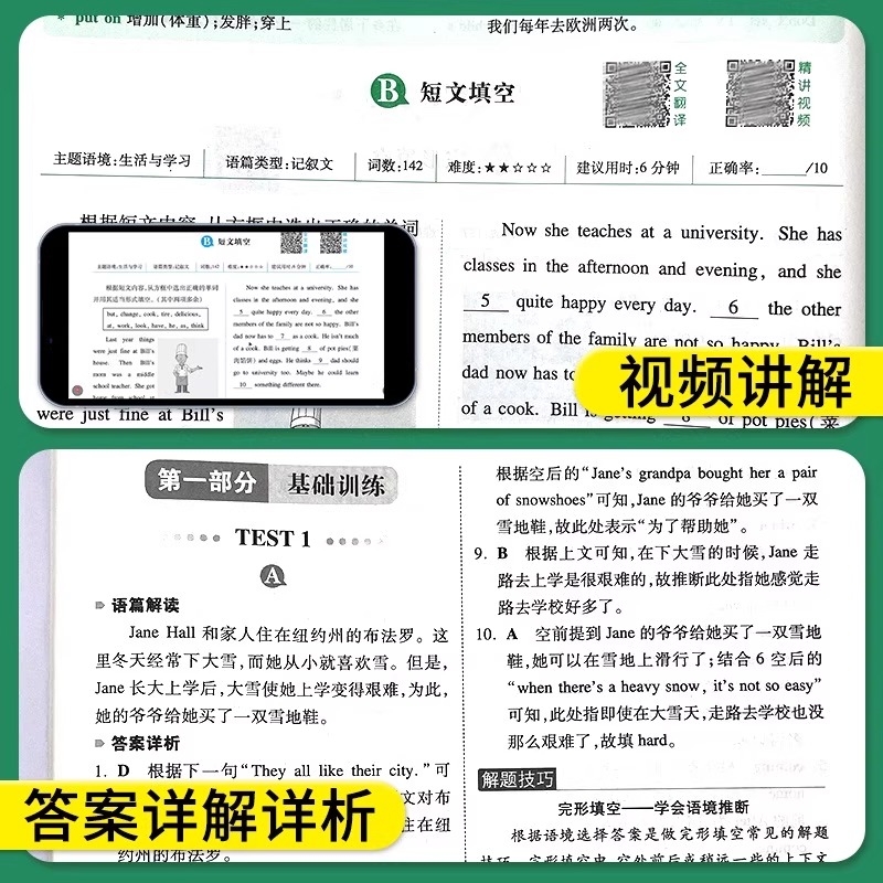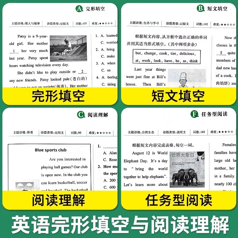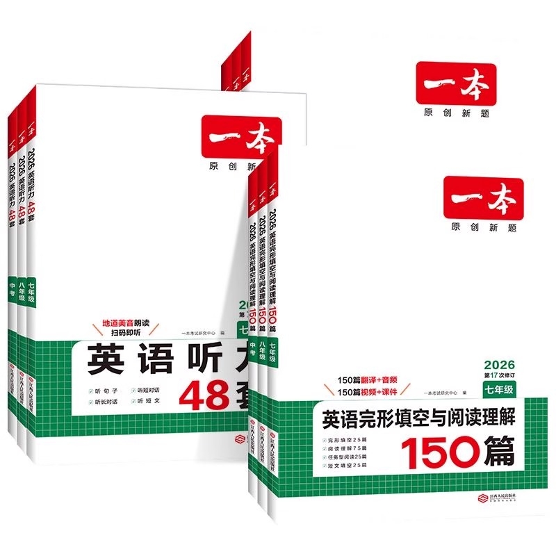 2026一本初中英语完形填空与阅读理解150篇七年级八年级九中考完型填空初一听力48套组合专项训练书上下册记叙文练习技能五合一