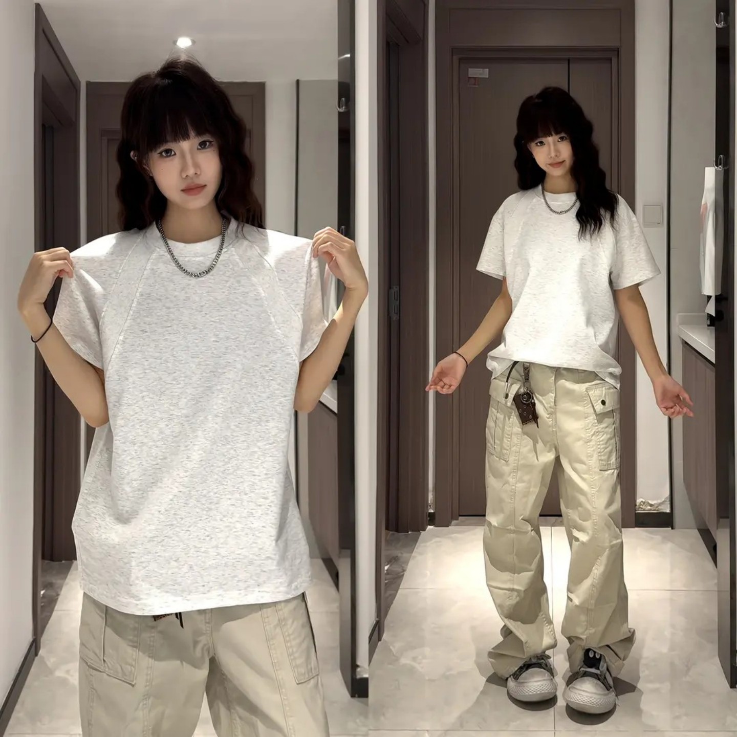 型上衣高级感情侣半截袖 浅灰色曼巴棉短袖 boxy版 美式 t恤男女夏季