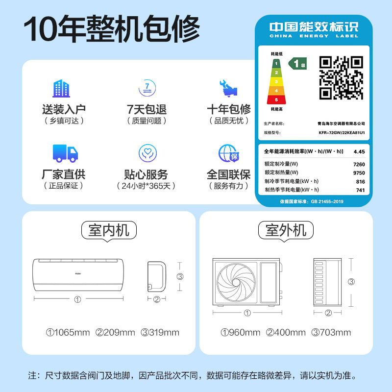 AUFIT空调奥克斯出品1匹1.5匹新一级能效冷暖两用变频家用2匹挂机