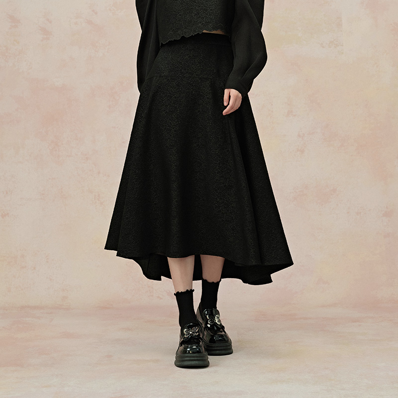 歌莉娅针织抓绒半身裙女秋冬流行穿搭高腰黑色包臀裙子1BSJ2D020