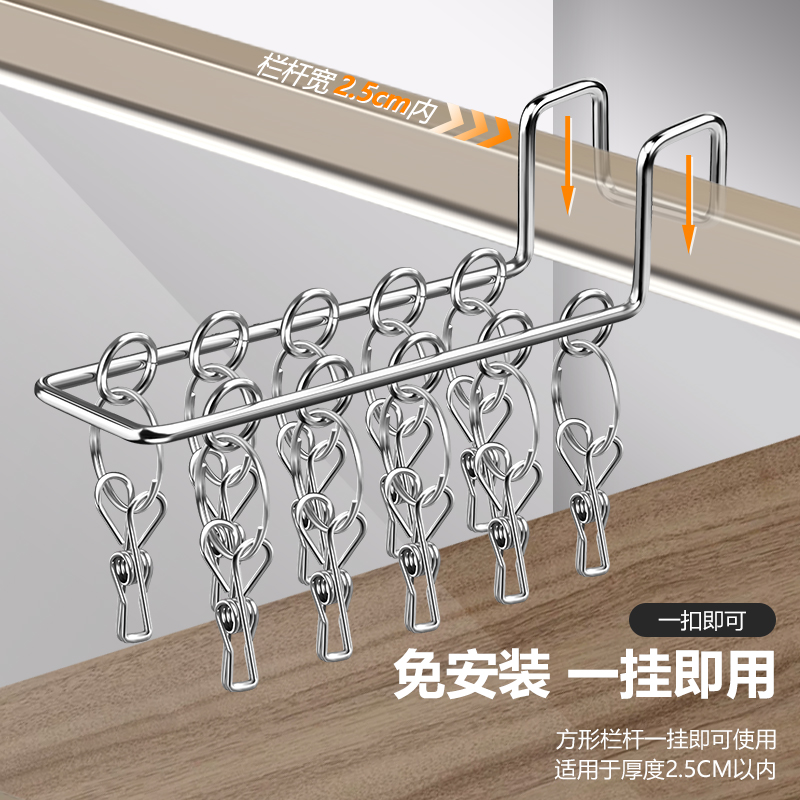 不锈钢多夹子衣架宿舍床杆晾衣架阳台护栏晒袜子毛巾内衣夹多规格