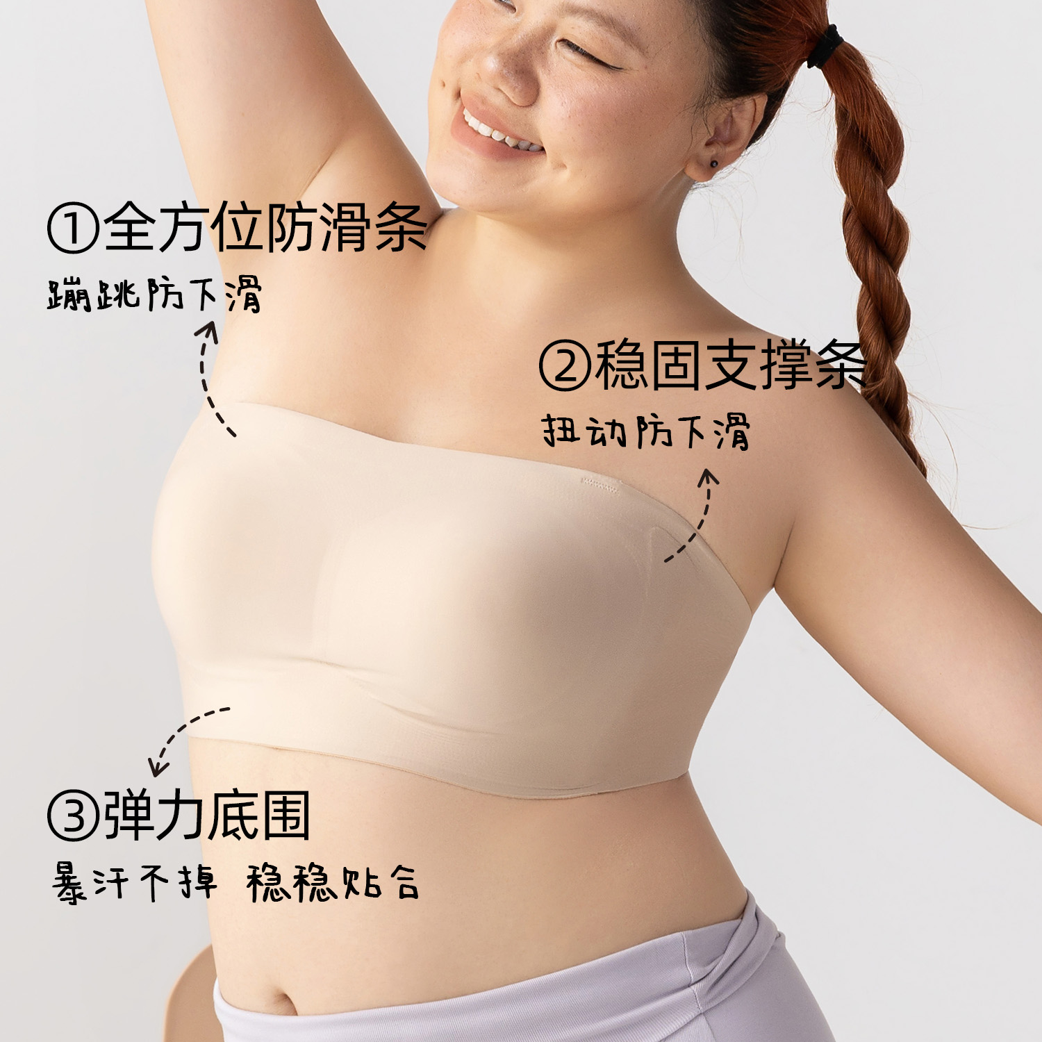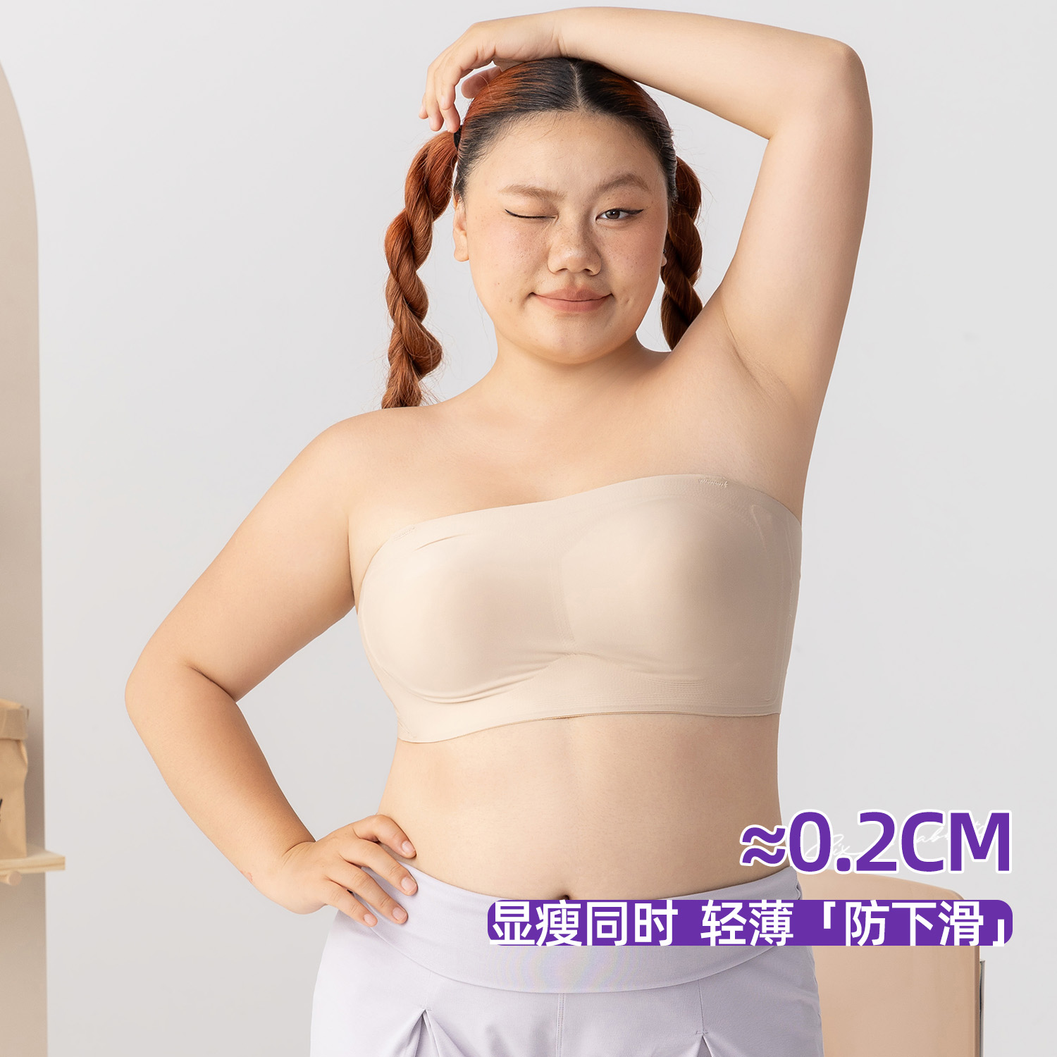 六只兔子大码 内衣女无痕无肩带聚拢防走光不防滑舒适轻薄显瘦抹胸
