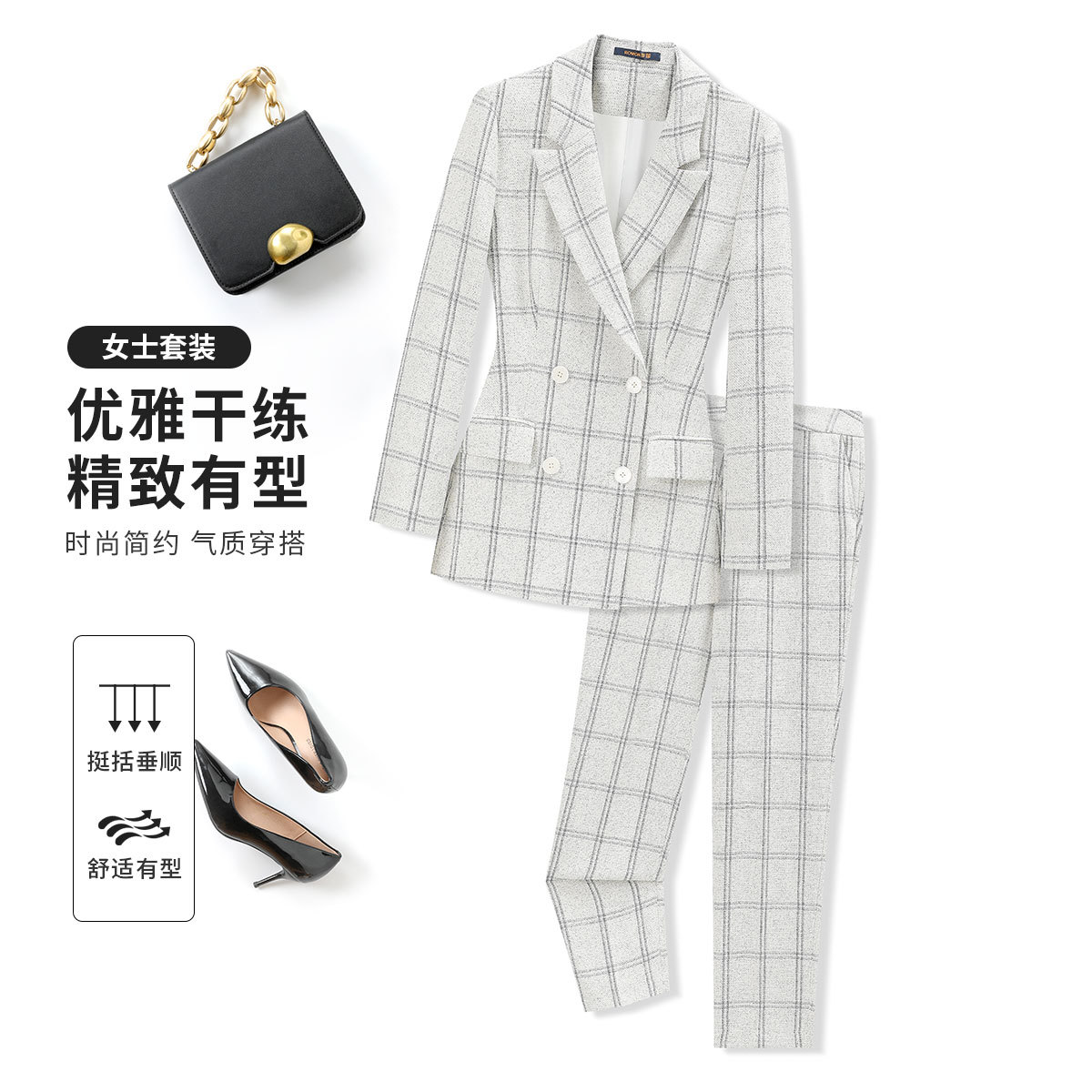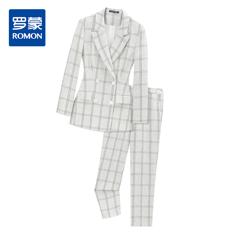 西服 格纹气质通勤优雅西装 西裤 时尚 两件套 罗蒙女士西服套装