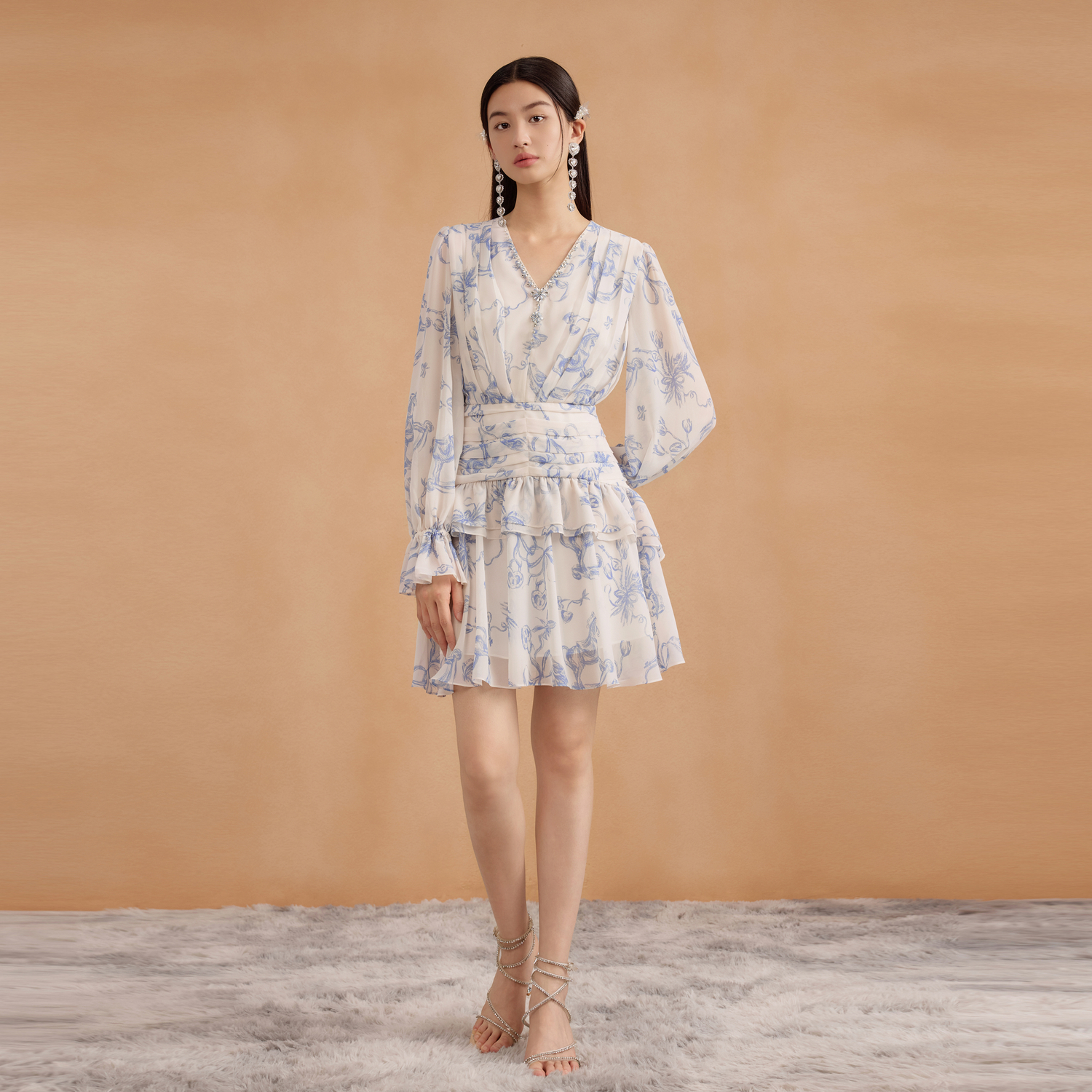 朗姿集团LIME莱茵连衣裙米白色优雅气质收腰减龄通勤25年秋季 新款