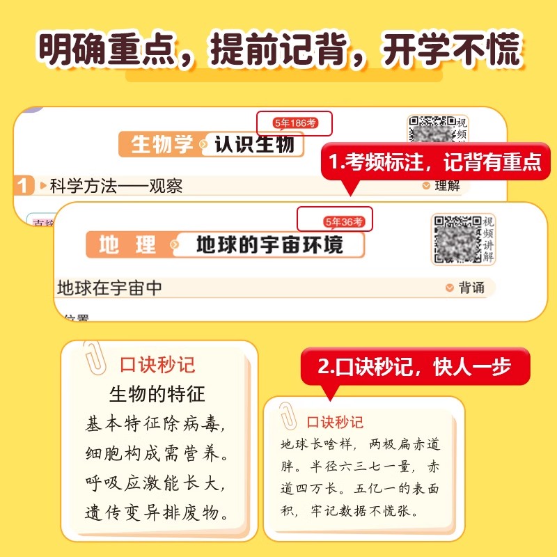 汉知简2025秋新初一必背一本全七年级小四门必背知识点初中语文英语政治历史地理生物人教版 教材同步知识大盘点每天5分钟提分笔记
