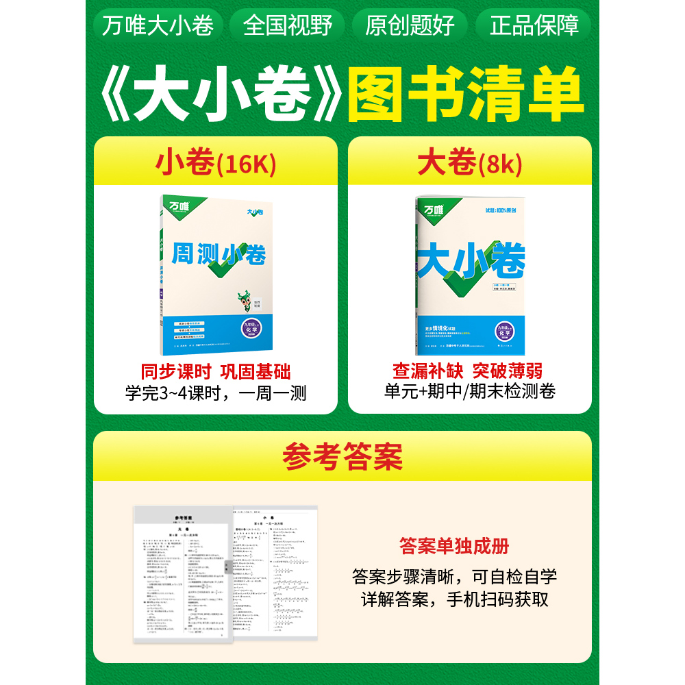 测试卷周测小卷综合大卷 全一册初中同步试卷原创好题综合检测查漏补缺9年级化学单元 2026新版 万唯大小卷九年级化学人教版