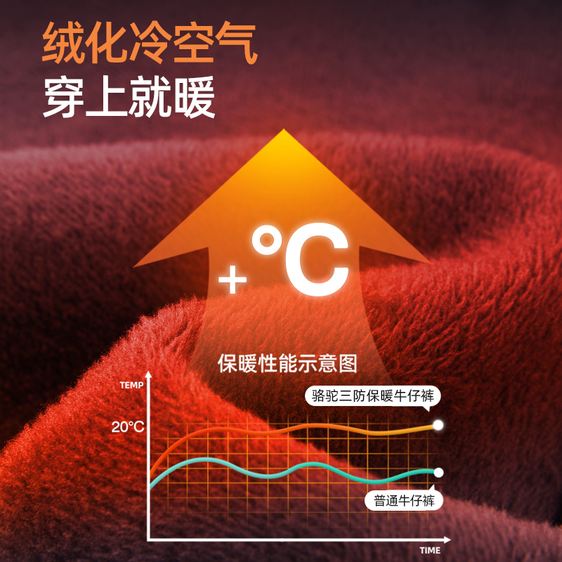 直筒复古休闲长裤 男款 防泼水加绒保暖 易打理防油污牛仔裤 骆驼男装