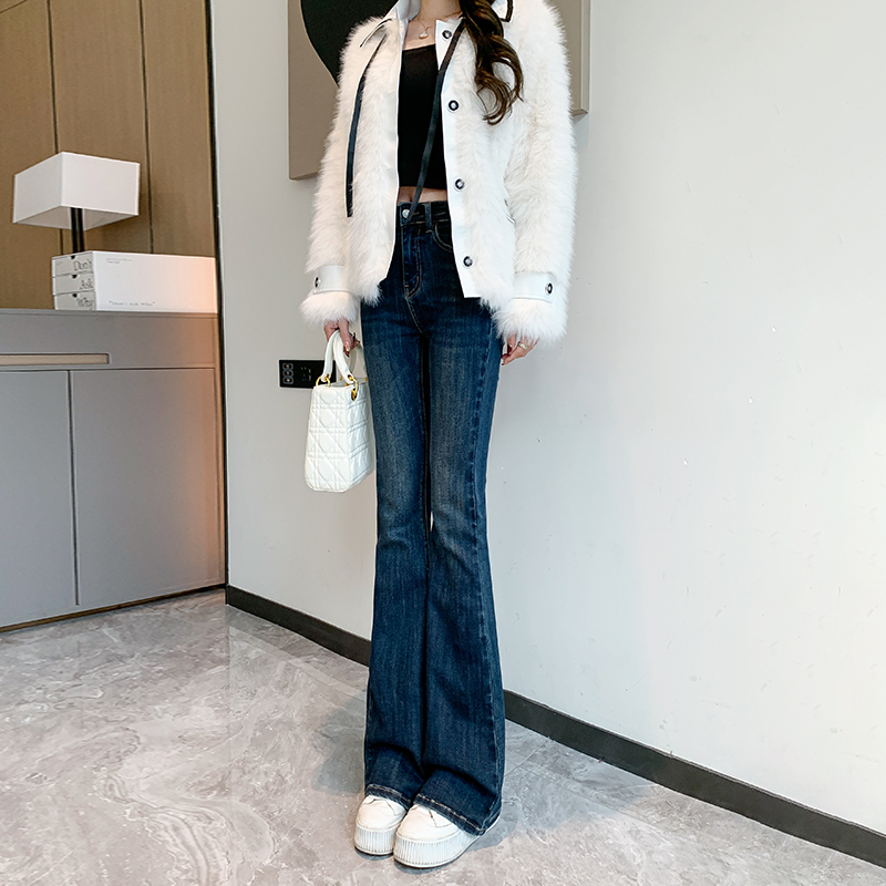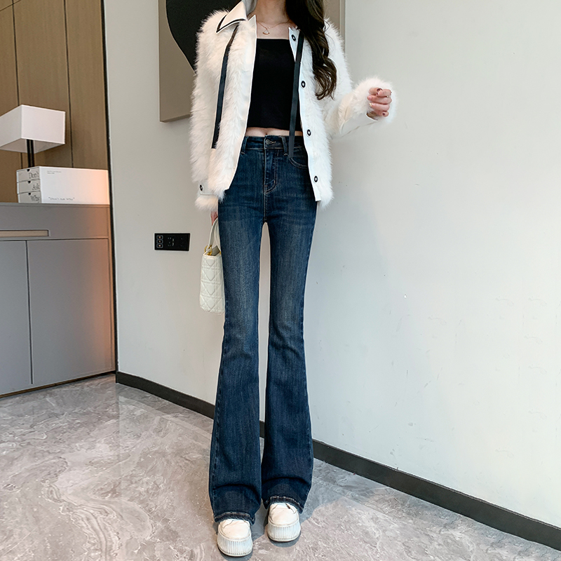 八九分直筒小个子加绒裤 窄版 女秋冬高腰显瘦修身 复古蓝烟管牛仔裤