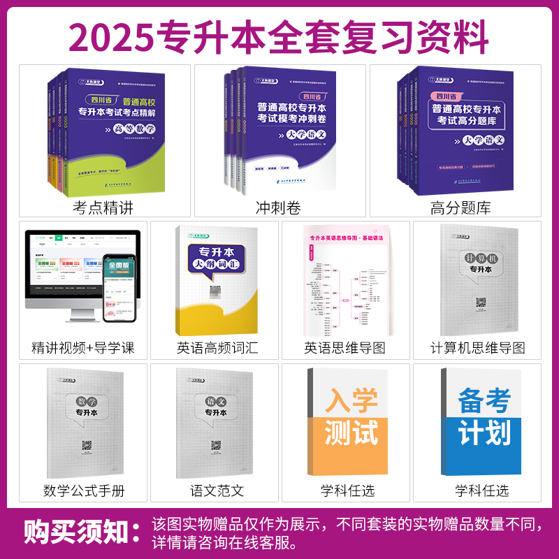 四川专升本教材2025统招专升本复习资料高等数学语文大学英语计算机基础高分题库教材历年真题试卷冲刺模考四川省普通高校专升本