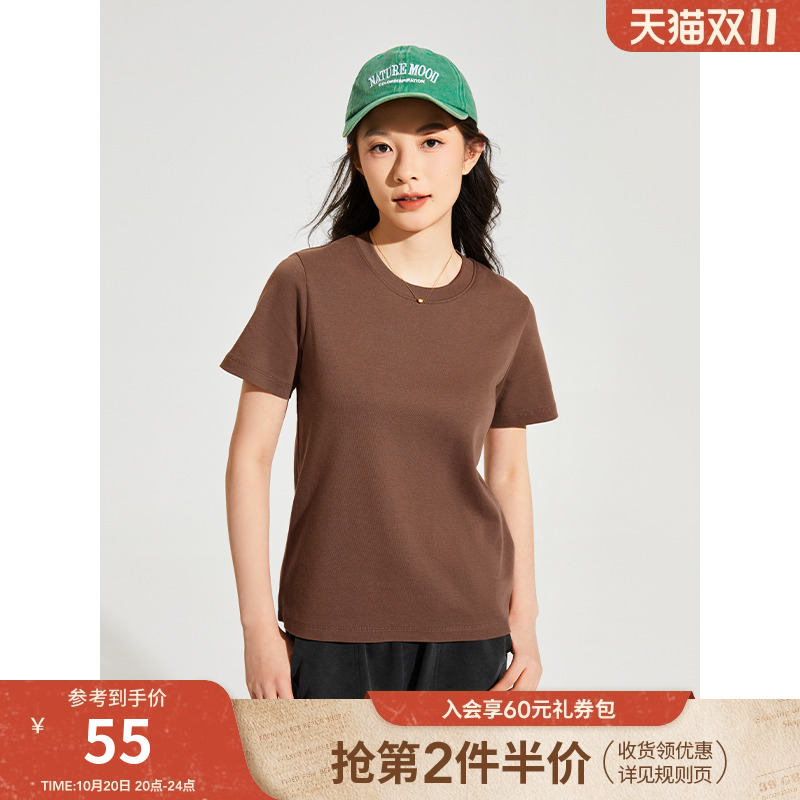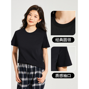 上衣运动休闲女装 女基础简约百搭短袖 新款 热风纯色T恤2025年春季