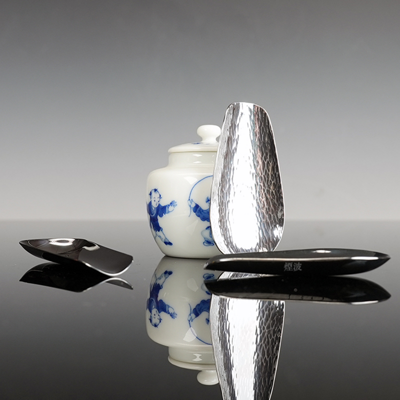 银本铺 铜胎镀银 镀金 烟波 茶勺茶则 银川堂 茶箕 茶具 日本银器