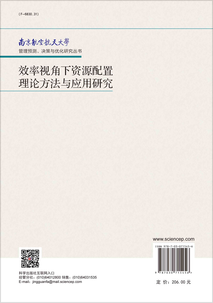 效率视角下资源配置理论方法与应用研究