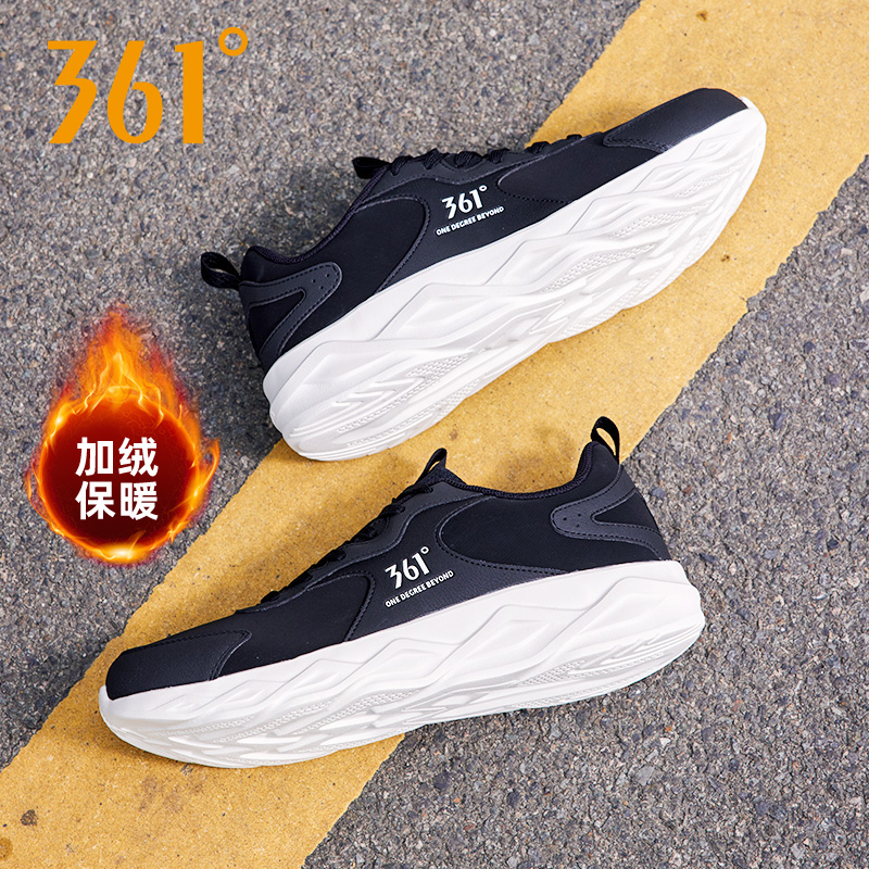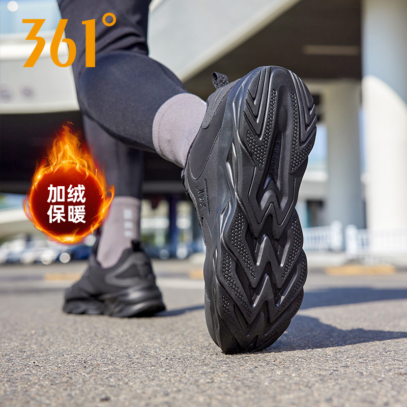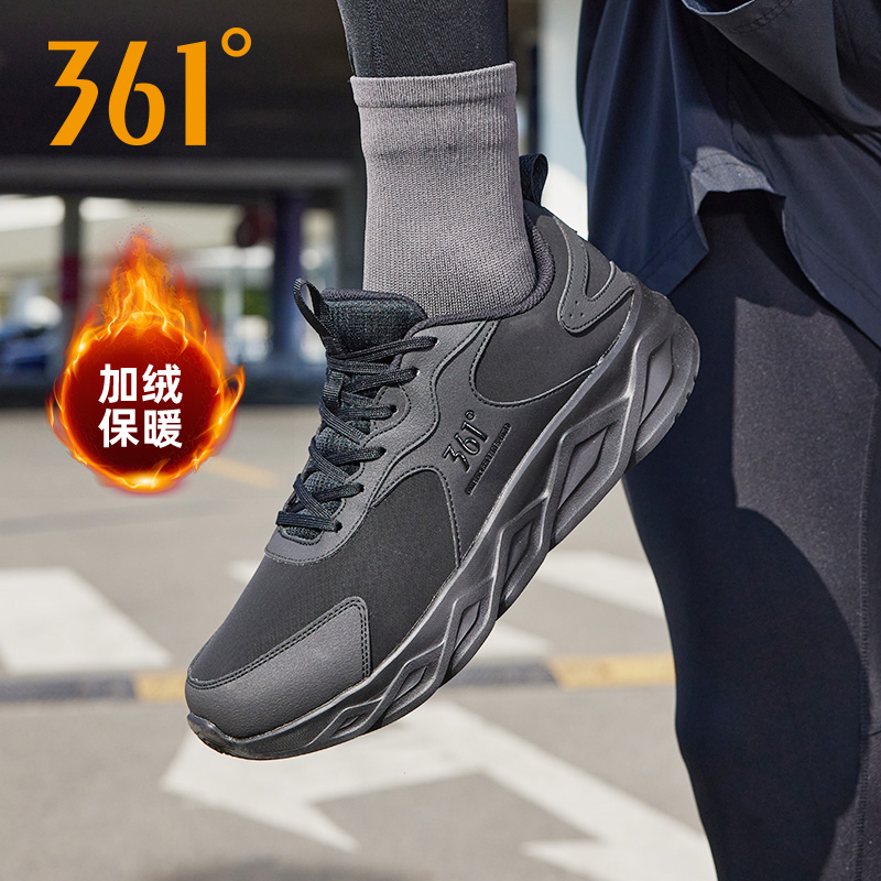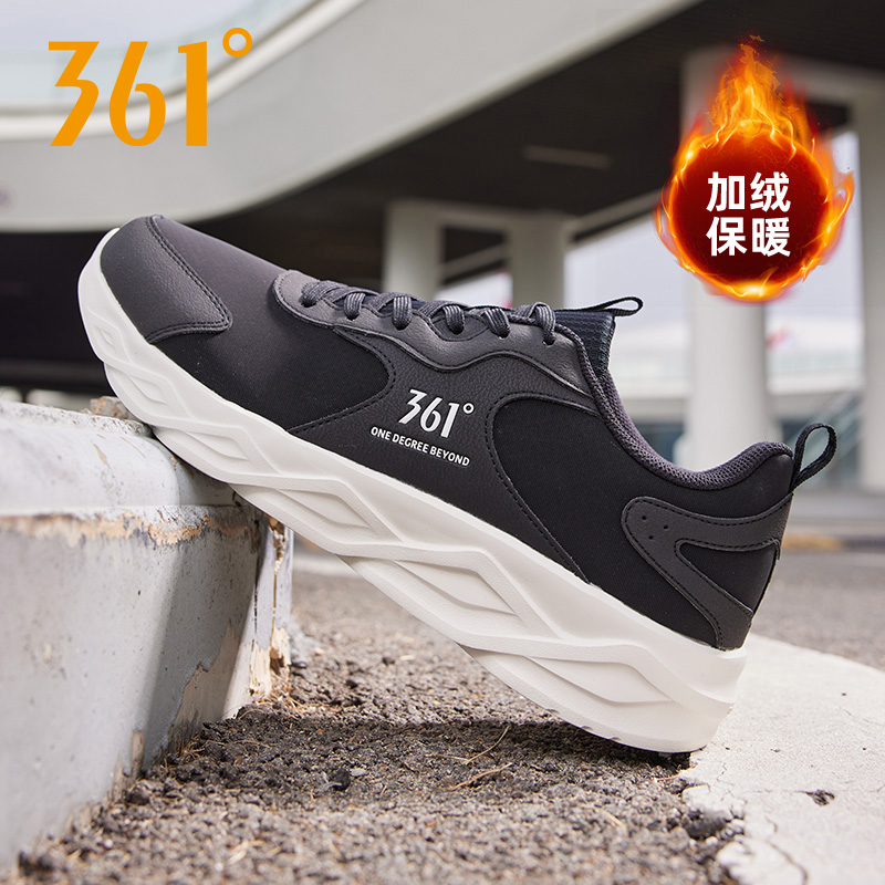 361度男鞋 轻便跑步鞋 运动鞋 革面加绒保暖棉鞋 2024秋冬新款 刀锋