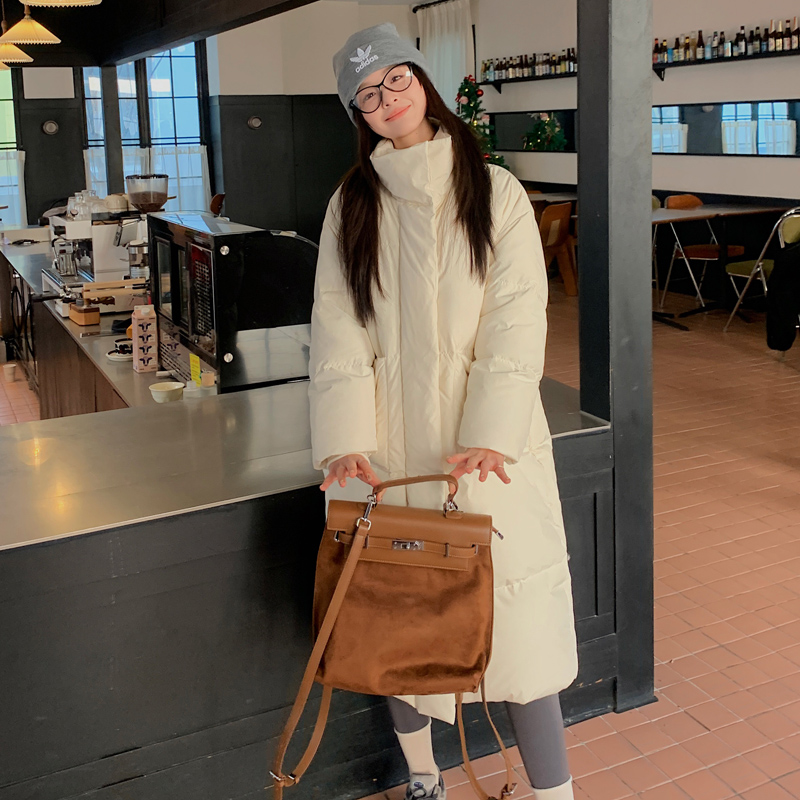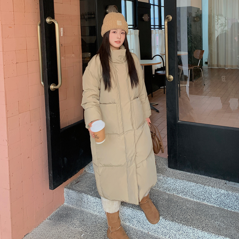 时尚 鸭鸭中长款 韩版 新款 保暖加厚过膝黑金外套潮 羽绒服女连帽冬季