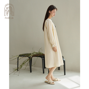 幸棉法式 睡裙女秋超仙睡衣家居服露背高级感连衣裙宽松长裙子 长袖