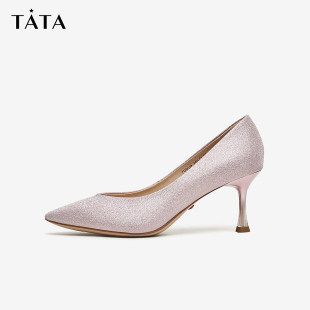 2025秋新7DDU9AQ4 女优雅晚宴细闪浅口单鞋 Tata他她法式 气质高跟鞋