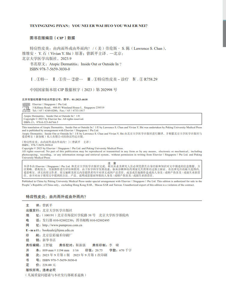 由内而外或由外而内? 曾跃平 主译 现货正版 社 特应性皮炎 北京大学医学出版 9787565930300 精装