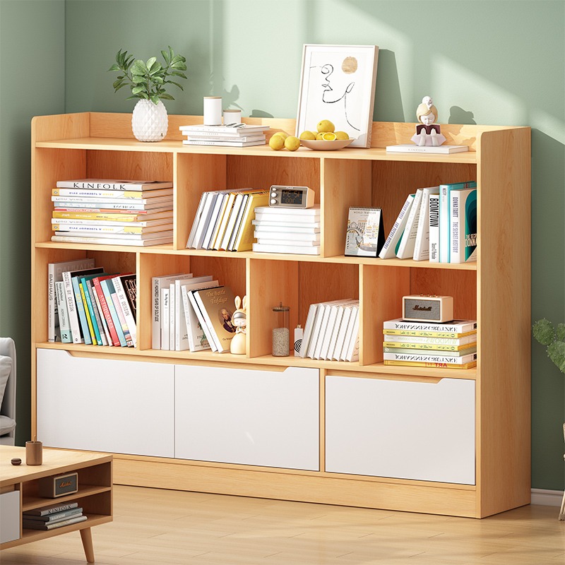 简易落地书架书柜家用客厅小户型收纳架一体带门多层置物架矮柜子